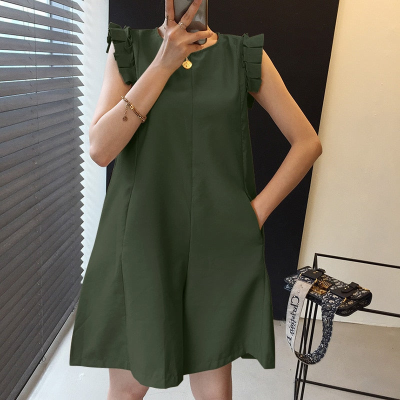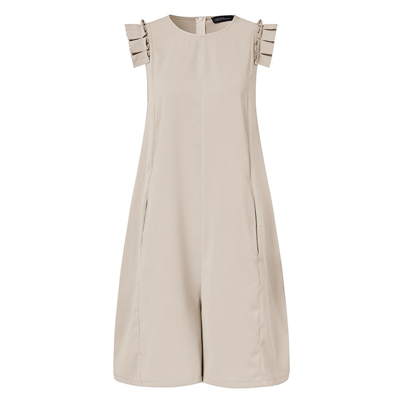 ZANZEA Eelgant 2022 Summer Women Short Sleeve Jumpsuits Casual O Neck Ruffles Rompers Female Work Playsuits Solid Short Overslls
