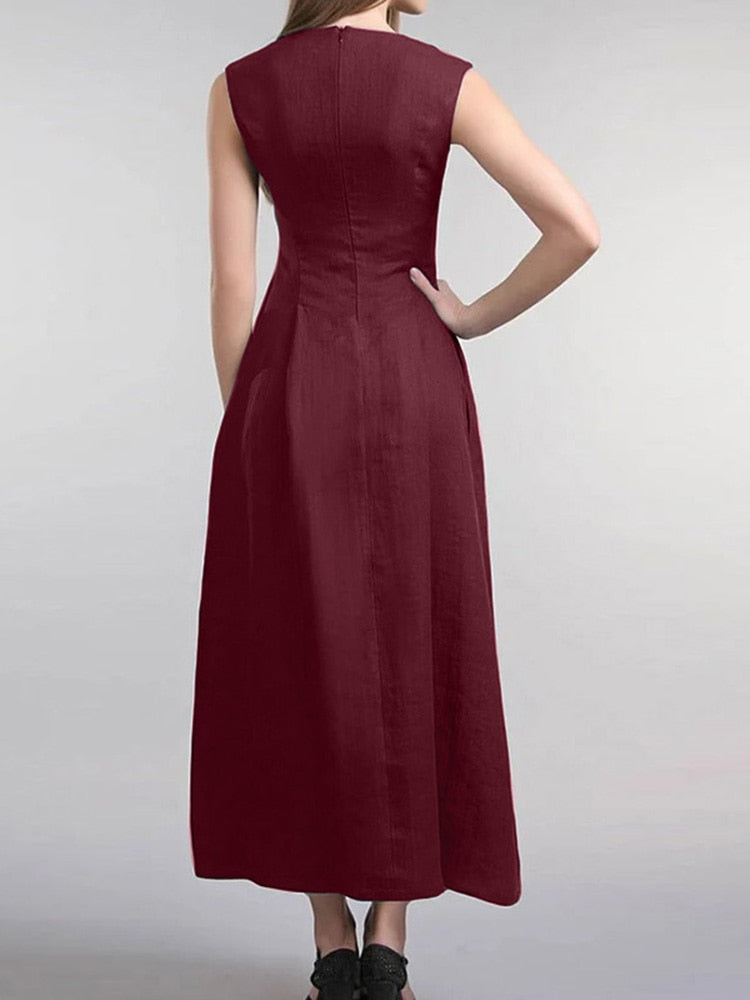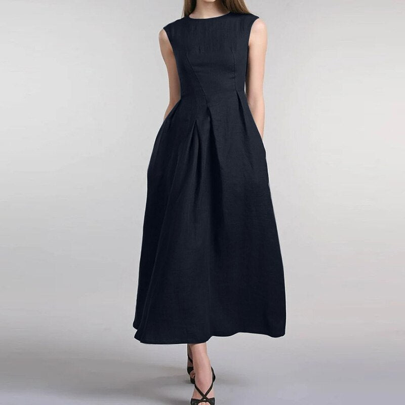 ZANZEA Elegant Women O Neck Sleeveless Midi Sundress Summer Fashion Solid Office Lady Dress Robe Femme Sarafans Vestidos Kaftan
