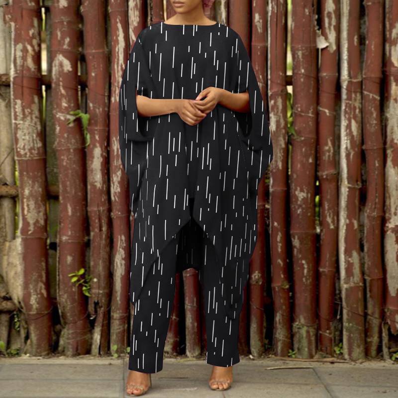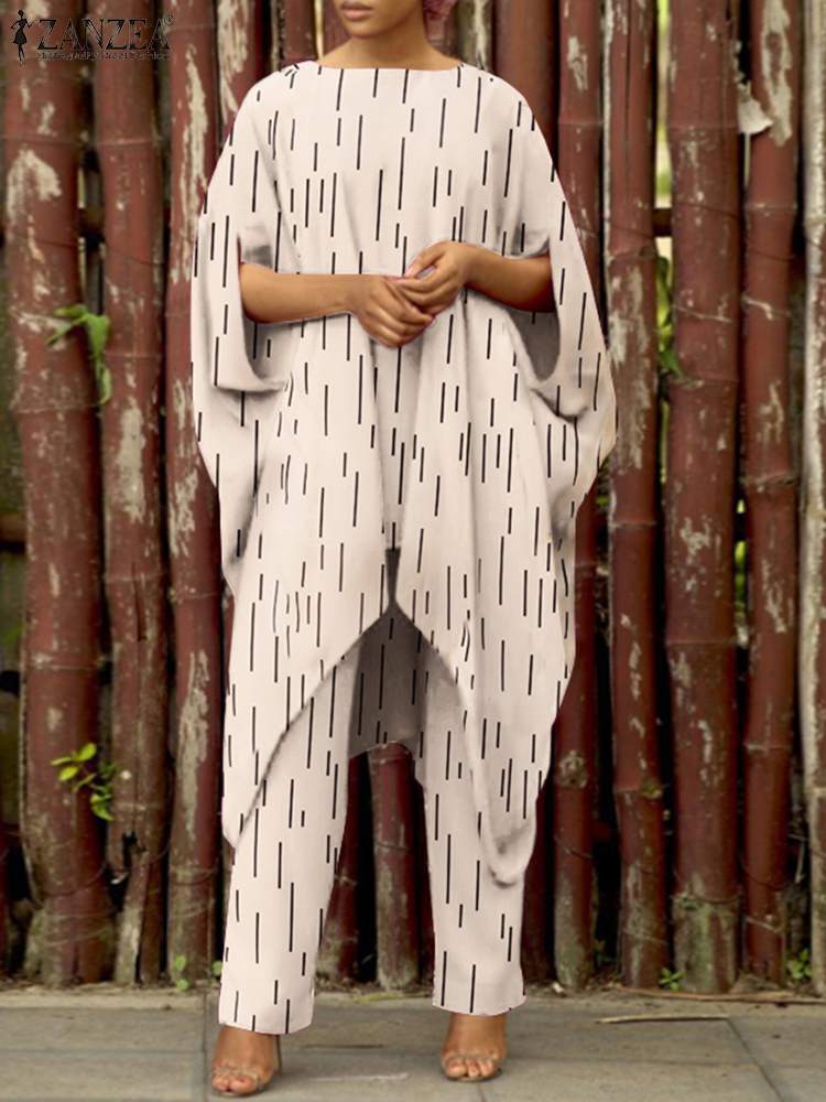 ZANZEA Fashion Women Urban Tracksuit Two Piece Sets Summer Asymmetrical Blouse Suits Loose Casual Printed Pant Sets Outifits