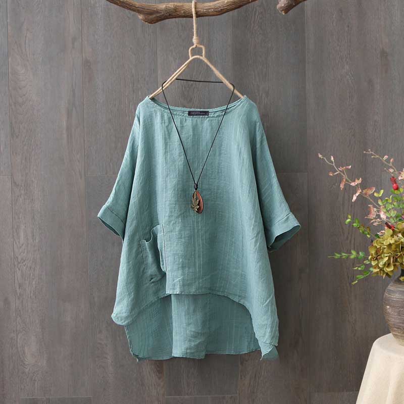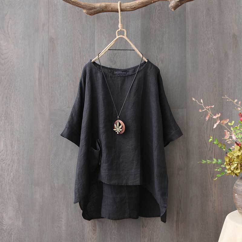 ZANZEA Summer Half Sleeve Cotton Linen Blouse Women Tunic Tops Casual Loose Vintage Blusas Femininas Solid Work Shirt