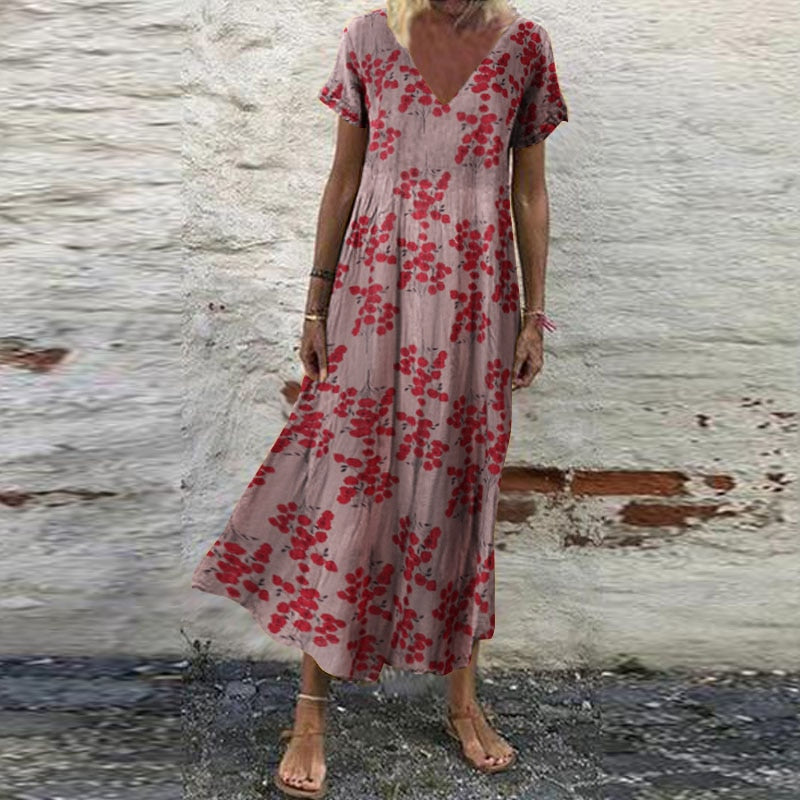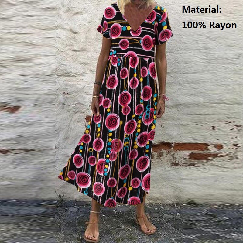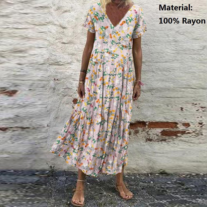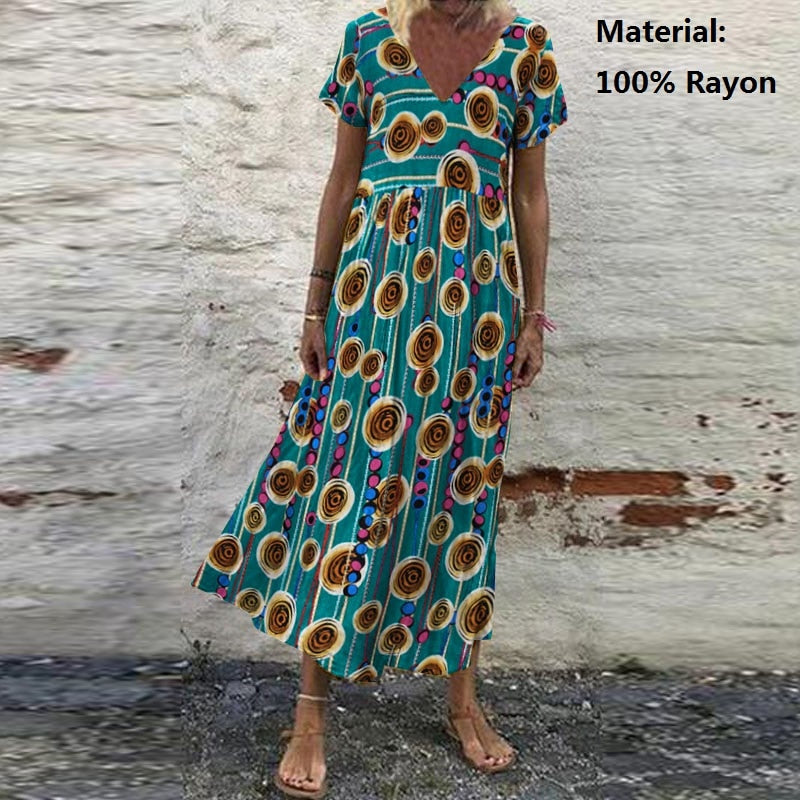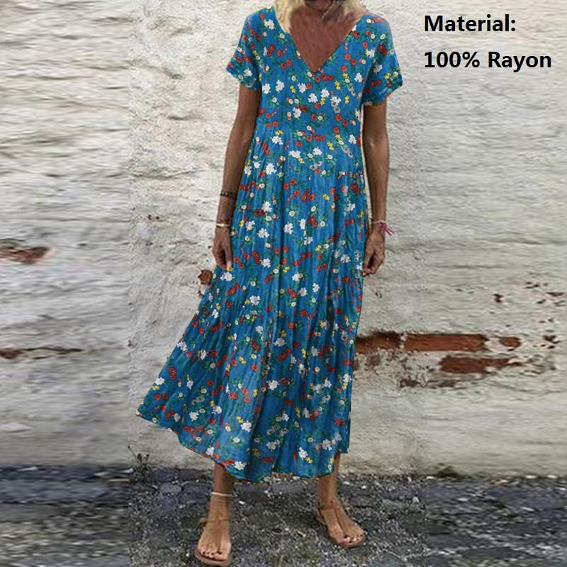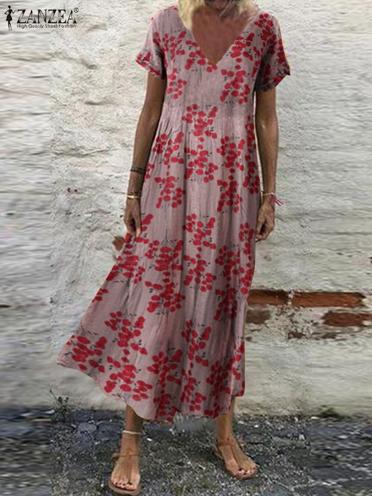 ZANZEA Summer Women Sundress Bohemian Floral Print Beach Maxi Dress Vintage V Neck Short Sleeve Oversized Dresses Kaftan Vestido