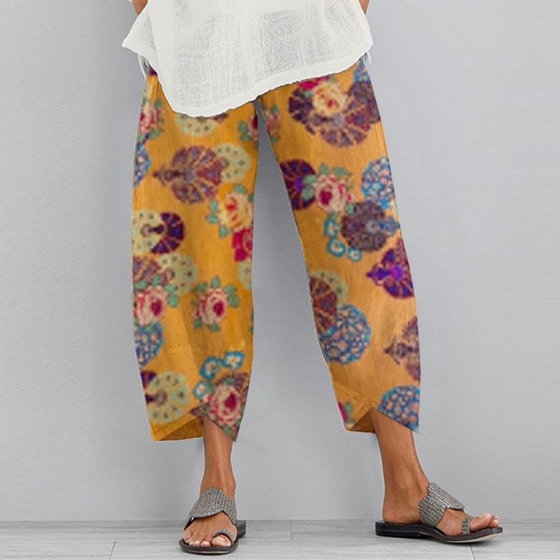 ZANZEA Vintage Floral Printed Pants Summer Women Cotton Linen Trousers Harem Pants Elastic Waist Loose Pantalon Pant