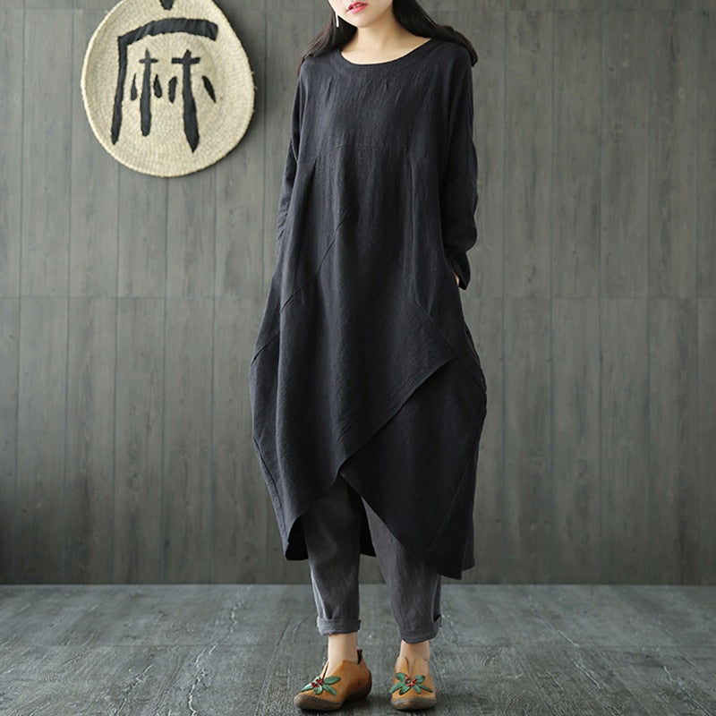 ZANZEA Women Autumn Long Sleeve Irregular Hem Loose Solid Midi Dress Vintage Vestido Casual Party Tunic Dresses Robe Sundress