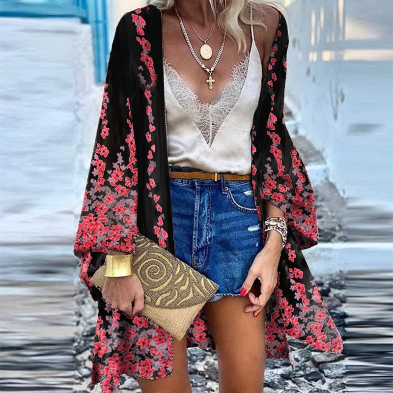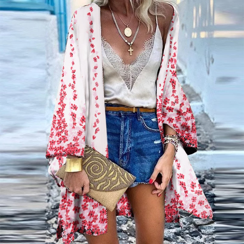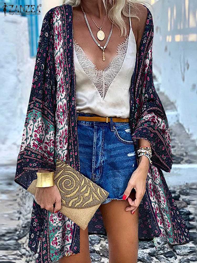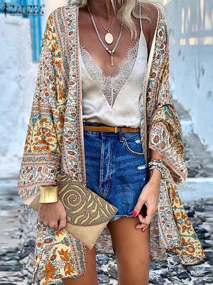 ZANZEA Women Cardigan Summer Open Front Bohemian Floral Printed Blouse Kimono Casual Loose Beach Tops Vintage Long Sleeve Blusas