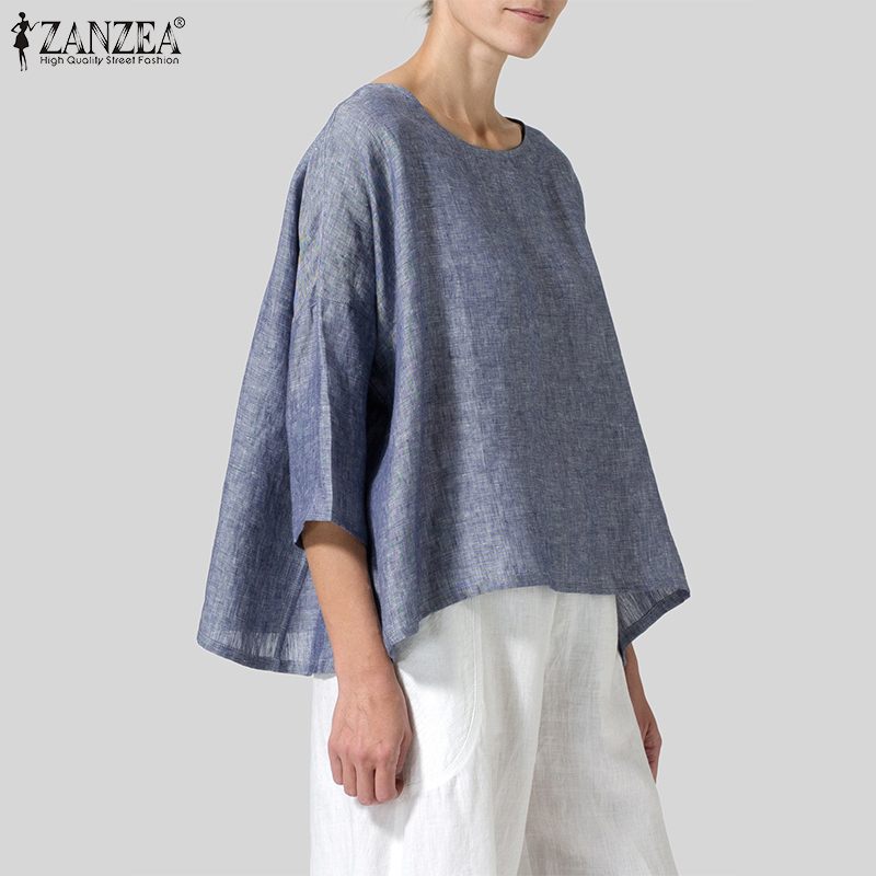 ZANZEA Women Elegant Blouse Summer O Neck 3/4 Sleeve Work Shirt Casual Chemise Solid Buttons Blusas  Loose Tops Robe