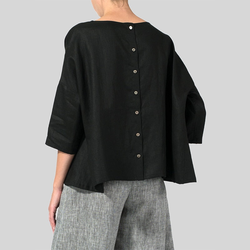 ZANZEA Women Elegant Blouse Summer O Neck 3/4 Sleeve Work Shirt Casual Chemise Solid Buttons Blusas Loose Tops Robe