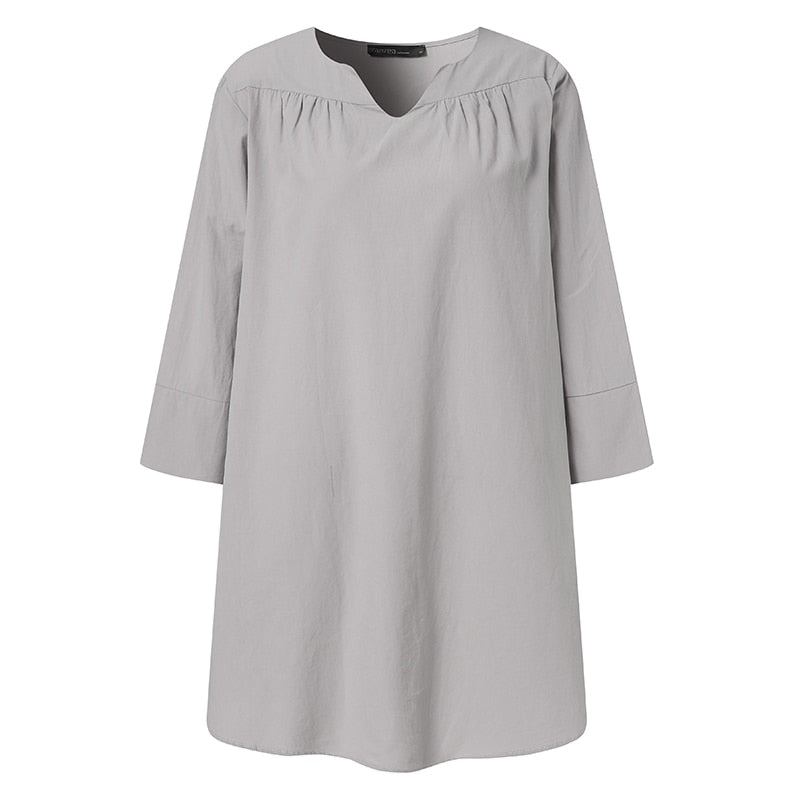 ZANZEA Women Elegant Blouse Summer V Neck 3/4 Sleeve Solid Tops Tunic Casual Cotton Linen Work Blusas Femininas Shirt Oversized