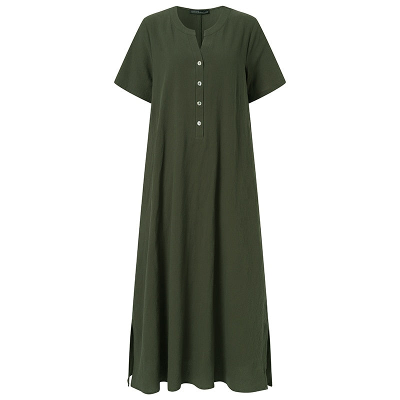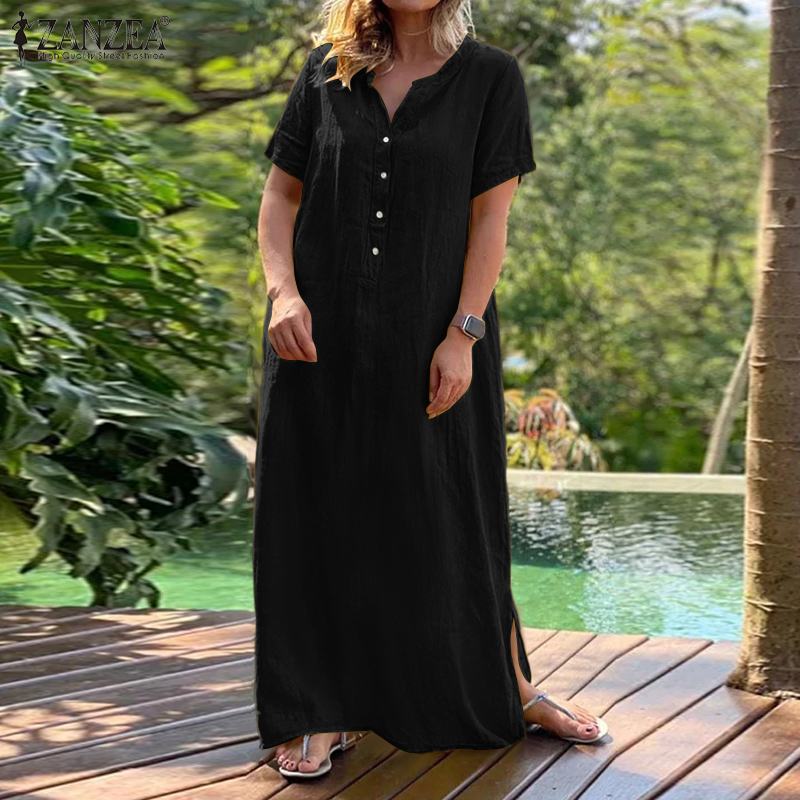 ZANZEA Women Long Shirt Dress Summer Sundress Vintage Short Sleeve Solid Cotton Vestidos Robe Femme Dresses Kaftan  7