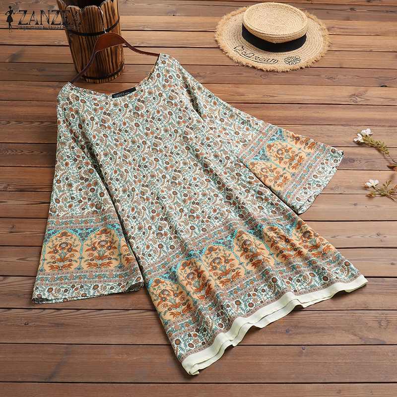 ZANZEA Women Summer Long Sleeve Floral Printed Dress Bohemian Holiday Short Vestidos Oversized Casual Beach Party Mini Dress