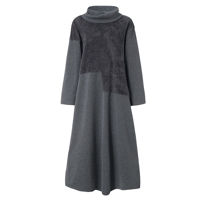 ZANZEA Women Turtleneck Long Sleeve Sweatshirts Dress Casual h Fluffy Patchwork Long Dress Autumn Vintage Vestido Sundress