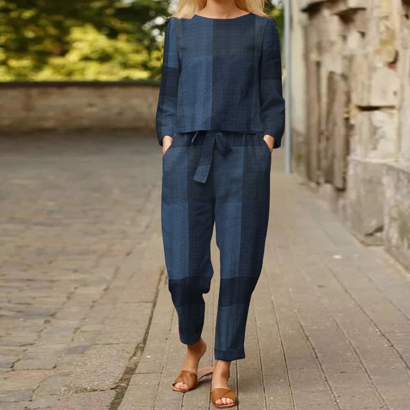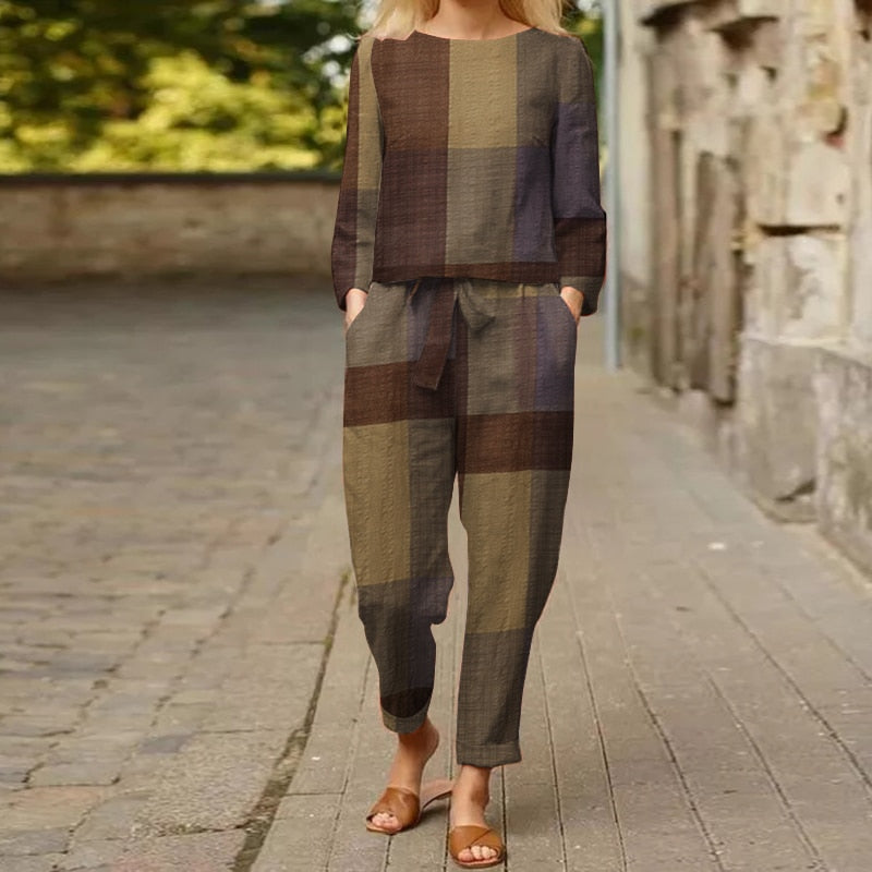 ZANZEA Women Vintage Autumn Pant Sets 2PCS Casual Plaid Checked Long Trousers Loose Suits Oversized Long Sleeve Matching Sets